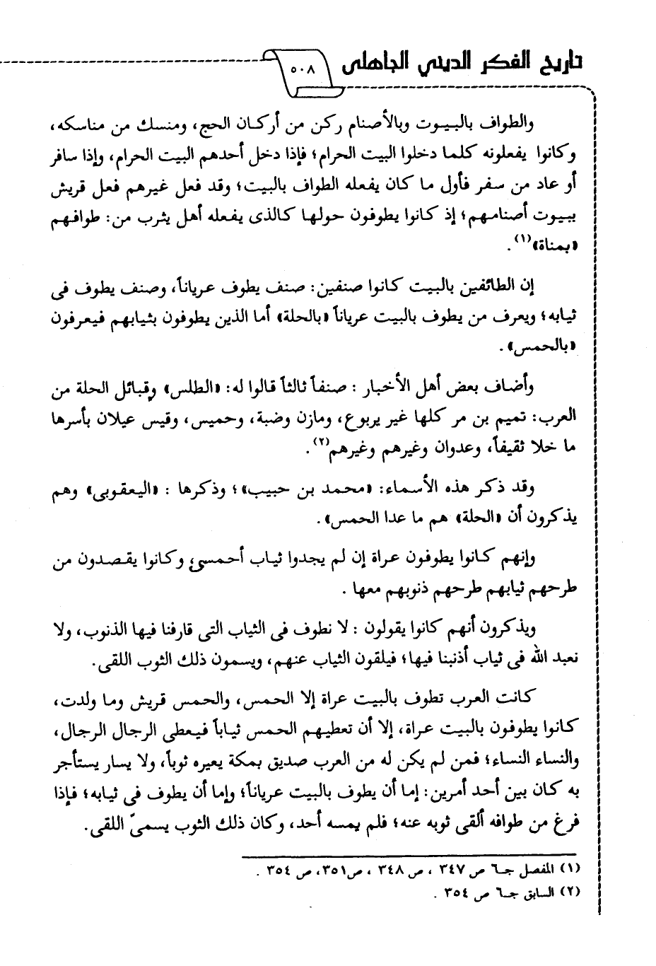 إن الطائفين بالبيت كانوا صنفين: صنف يطوف عريانا، وصنف يطوف في ثيابه؛ ويعرف من يطوف بالبيت عريانا "بالحلة" أما الذين يطوفون بثيابهم فيعرفون "بالحمس".