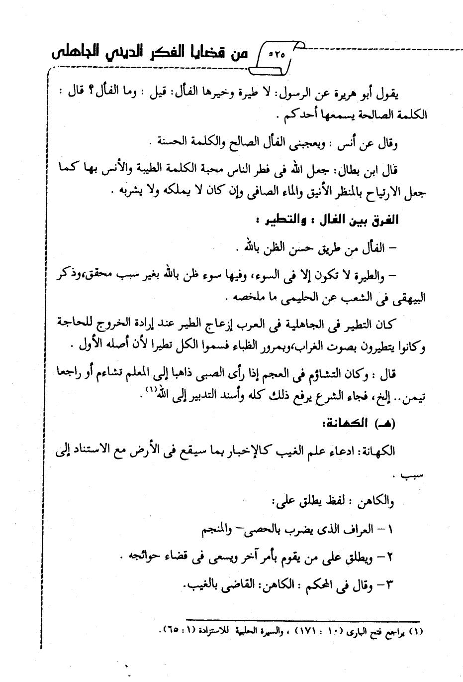 يقول أبو هريرة عن الرسول: لا طيرة وخيرها الفأل: قيل: وما الفأل؟ قال: الكلمة الصالحة يسمعها أحدكم.