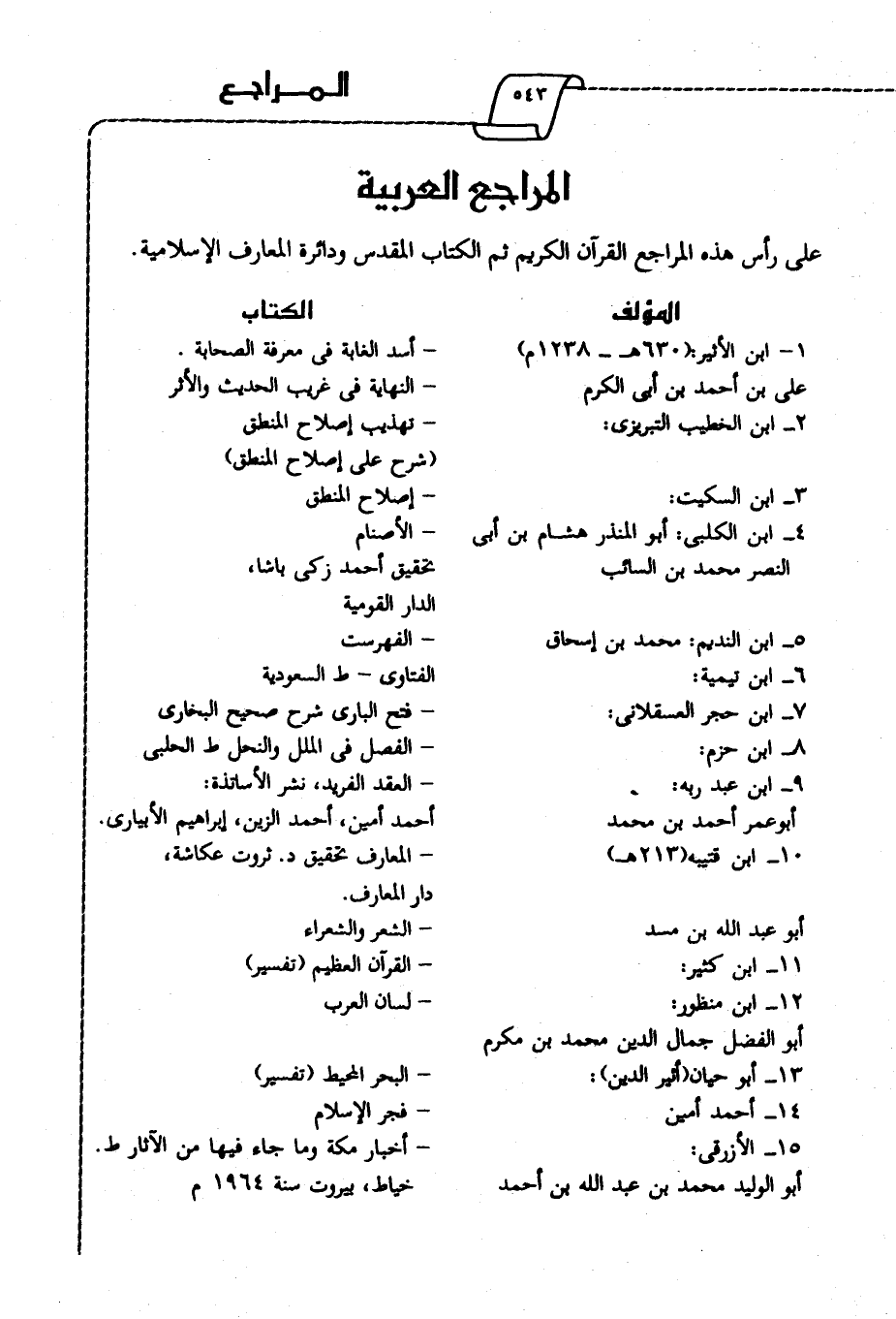 على رأس هذه المراجع القرآن الكريم ثم الكتاب المقدس ودائرة المعارف الإسلامية.