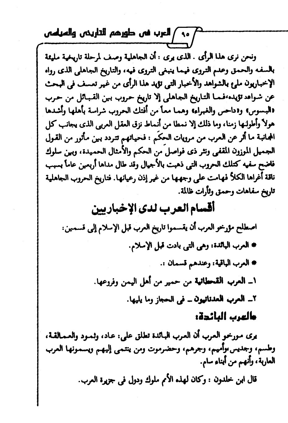 أقسام العرب لدى الإخباريين: