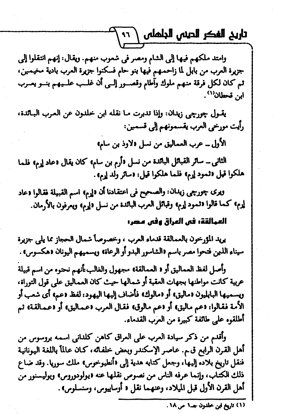 يقول جورجي زيدان: وإذا تدبرت ما نقله ابن خلدون عن العرب البائدة، رأيت مورخي العرب يقسمونهم إلى قسمين: