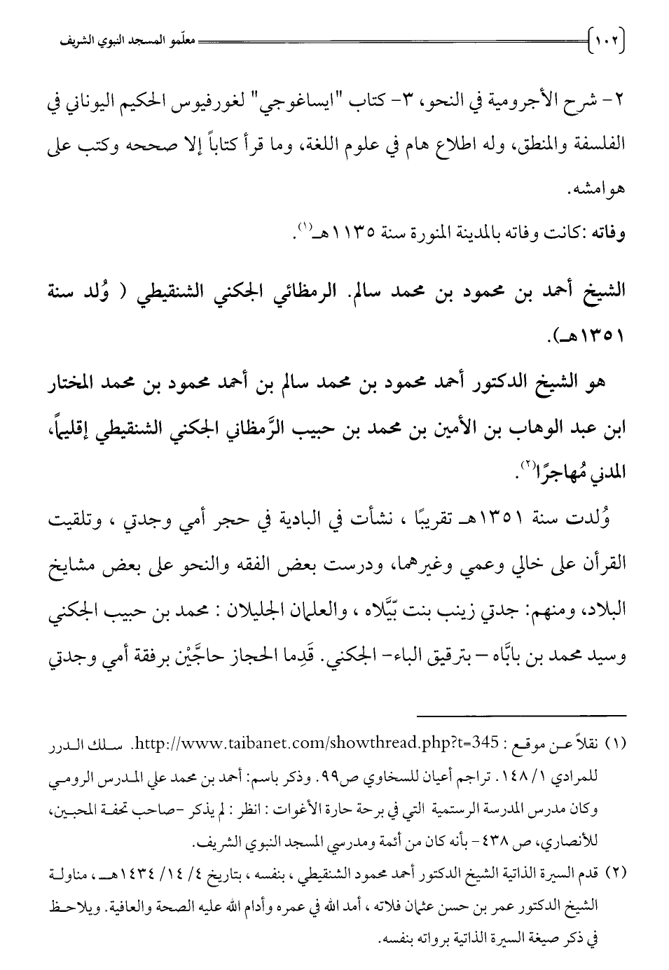 للأنصاري، ص 438 - بأنه كان من أئمة ومدرسي المسجد النبوي الشريف.