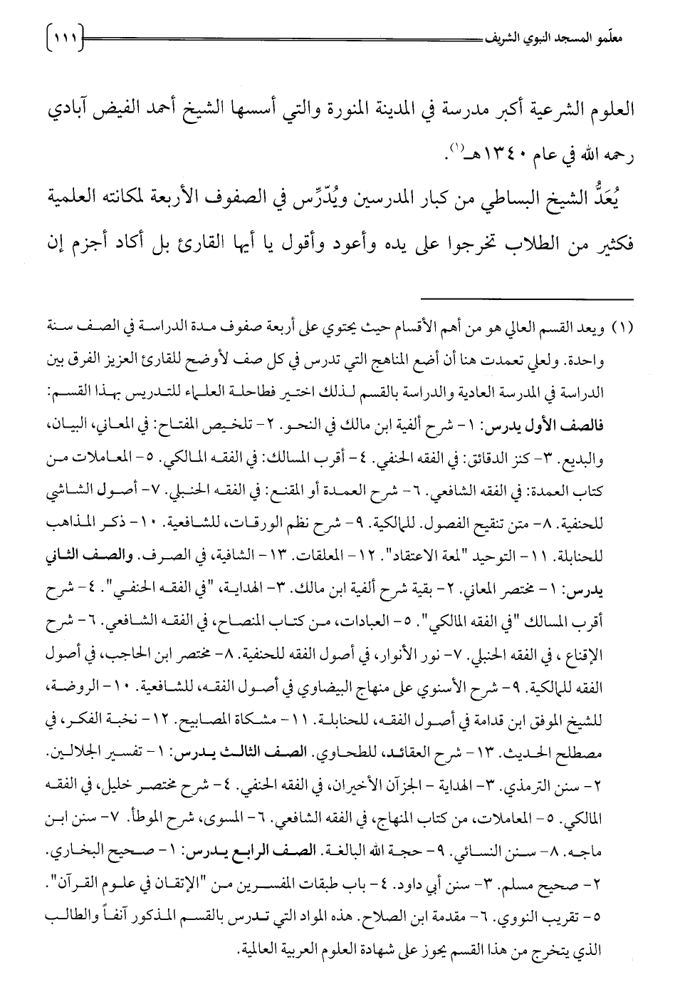 العلوم الشرعية أكبر مدرسة في المدينة المنورة والتي أسسها الشيخ أحمد الفيض ابادي