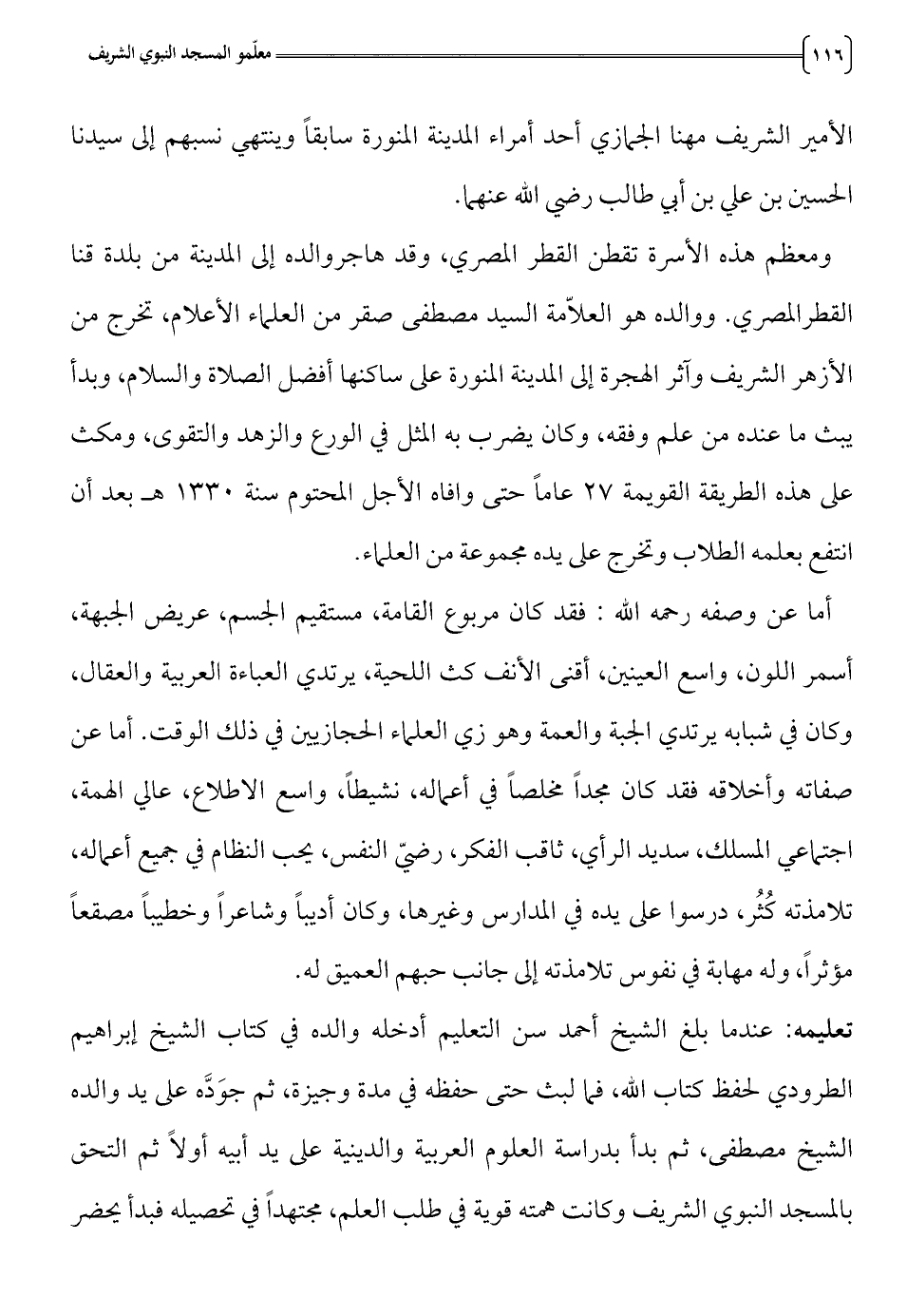 على هذه الطريقة القويمة 27 عاما حتى وافاه الأجل المحتوم سنة 1330 هـ بعد أن