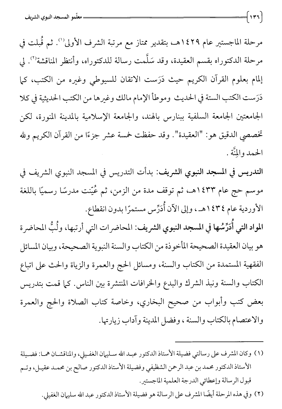 (1) وكان المشرف على رسالتي فضيلة الأستاذ الدكتور عبد الله سليمان الغفيلي، والمناقشان هما: فضيلة