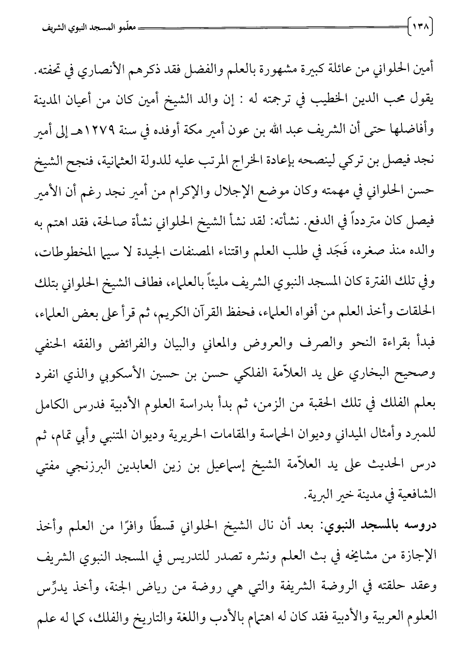 وفي تلك الفترة كان المسجد النبوي الشريف مليئا بالعلماء، فطاف الشيخ الحلواني بتلك
