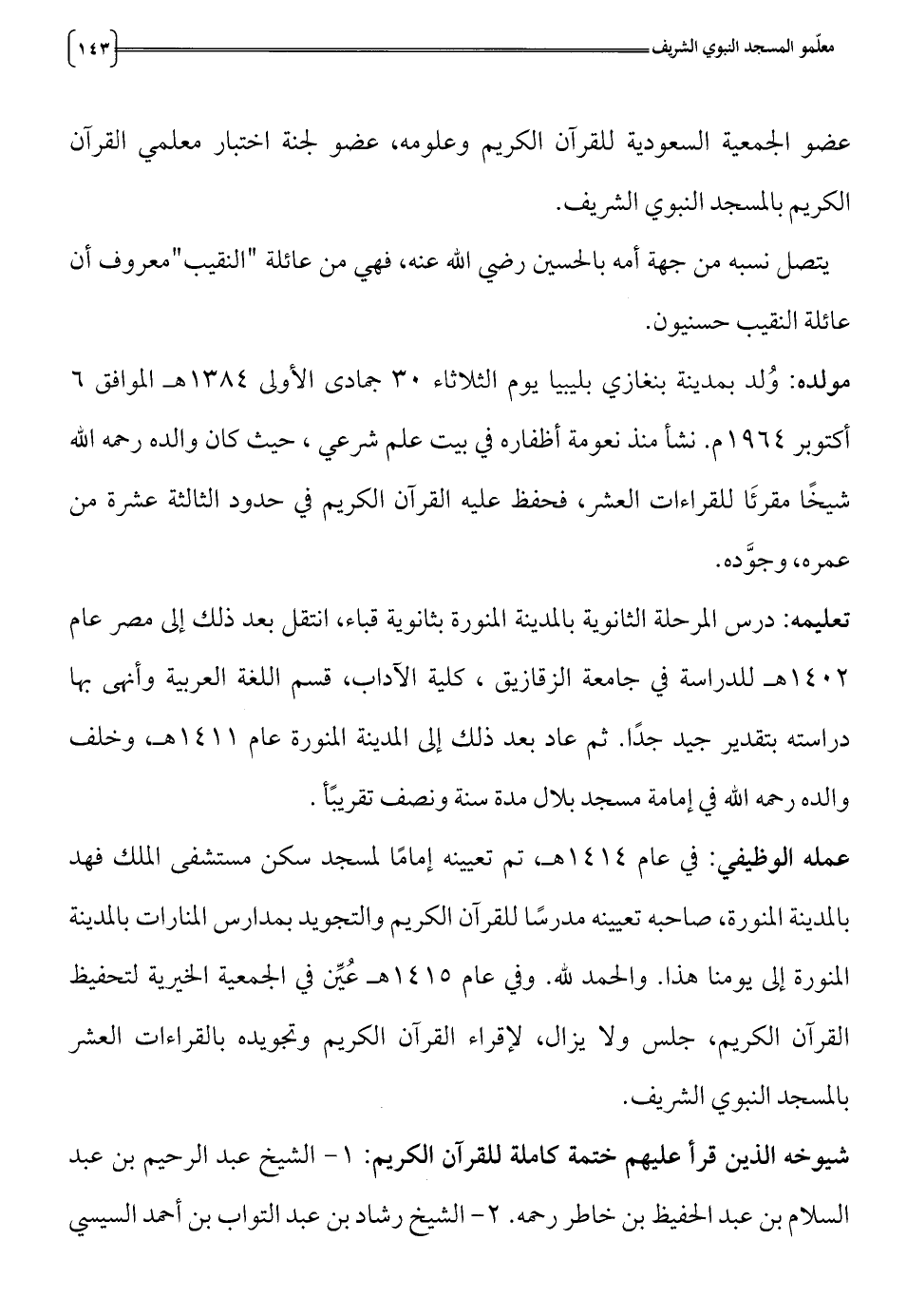 المنورة إلى يومنا هذا. والحمد لله. وفي عام 1415 هـ عين في الجمعية الخيرية لتحفيظ