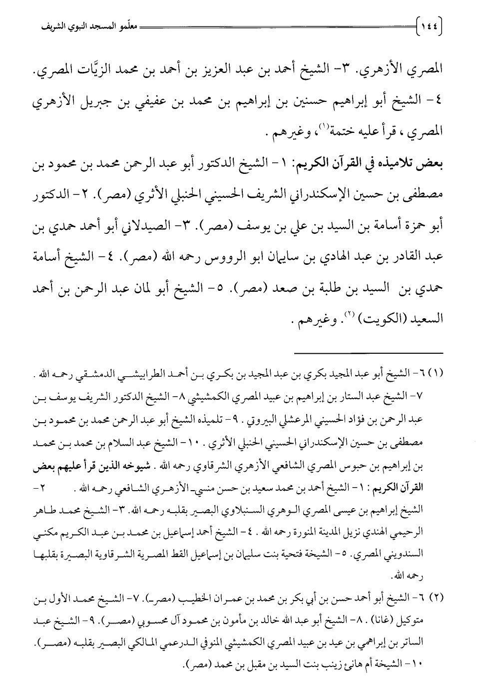 7 - الشيخ عبد الستار بن إبراهيم بن عبيد المصري الكمشيشي 8 - الشيخ الدكتور الشريف يوسف بن