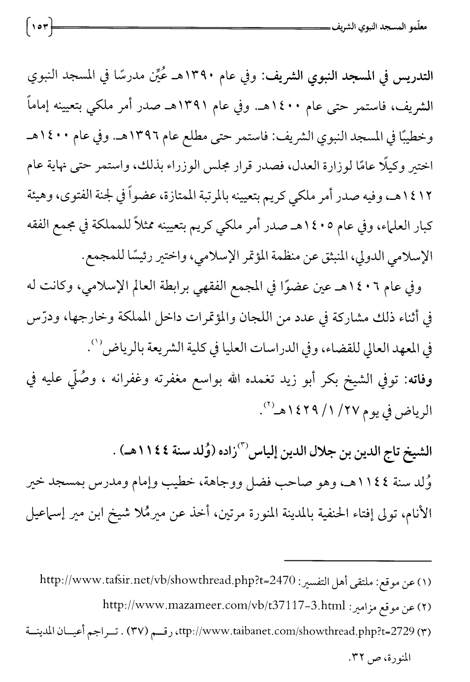 (3) 2729= t ? ttp:// www.taibanet.com/showthread.php , رقم (37). تراجم أعيان المدينة المنورة، ص 2 3.
