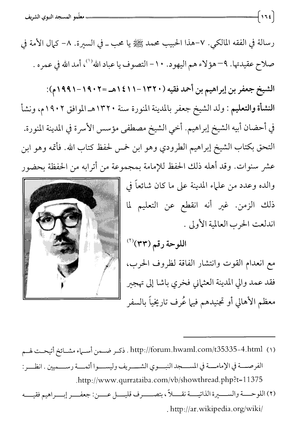 (1) 9: // forum. hwaml.com/t35335 - 4. html، ذكر ضمن أسماء مشائخ أتيحت لهم الفرصة في الإمامة في المسجد النبوي الشريف وليسوا أئمة رسميين. انظر: