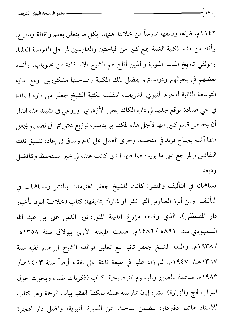 للأستاذ هاشم دفتردار، يتضمن مباحث عن السيرة النبوية، وفضل دار الهجرة