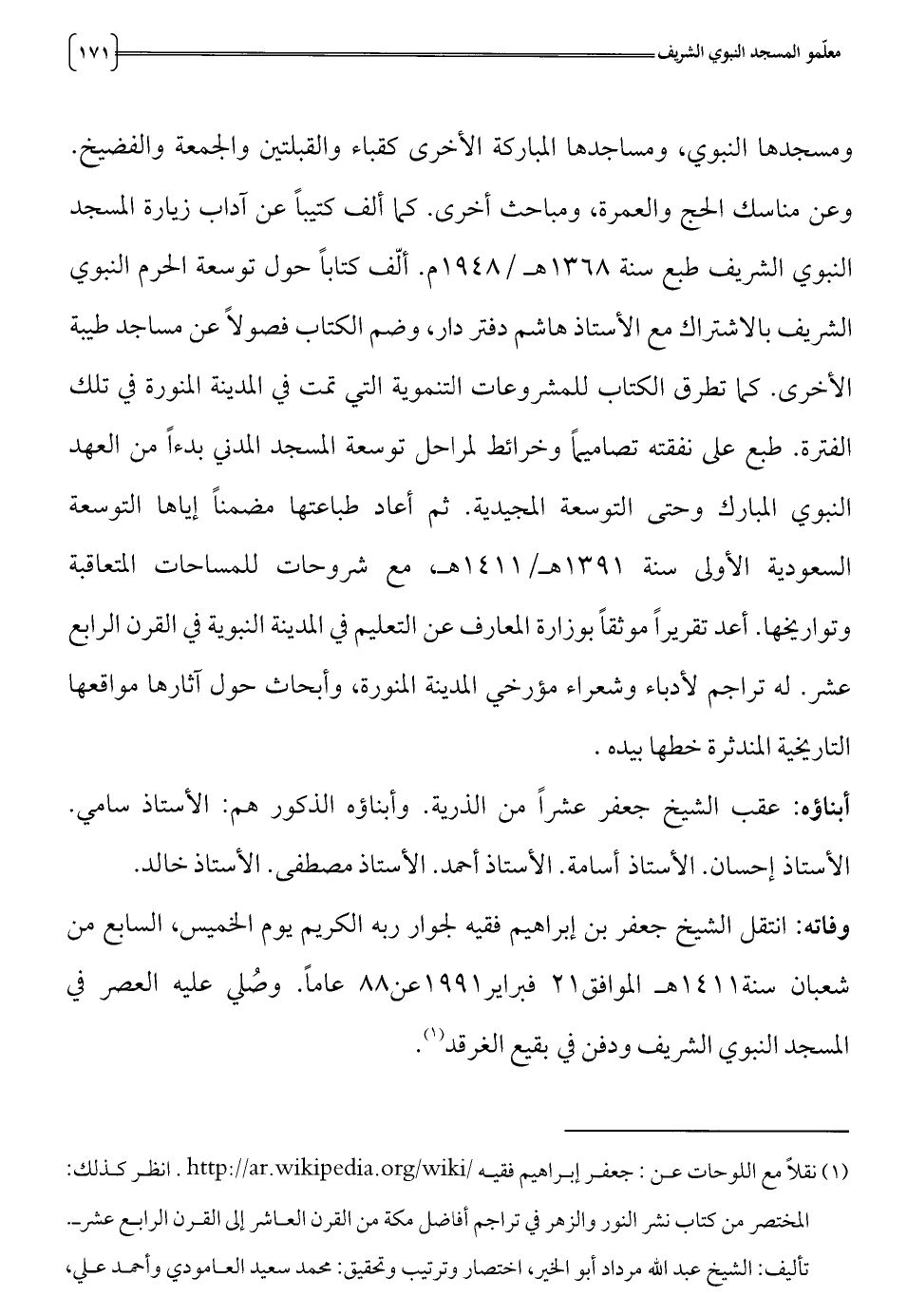 النبوي الشريف طبع سنة 1368 هـ/948 1م. ألف كتابا حول توسعة الحرم النبوي