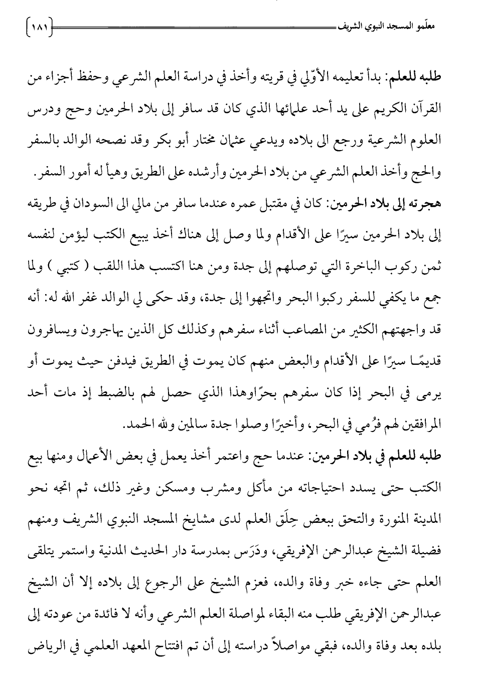 فضيلة الشيخ عبدالرحمن الإفريقي، ودرس بمدرسة دار الحديث المدنية واستمر يتلقى
