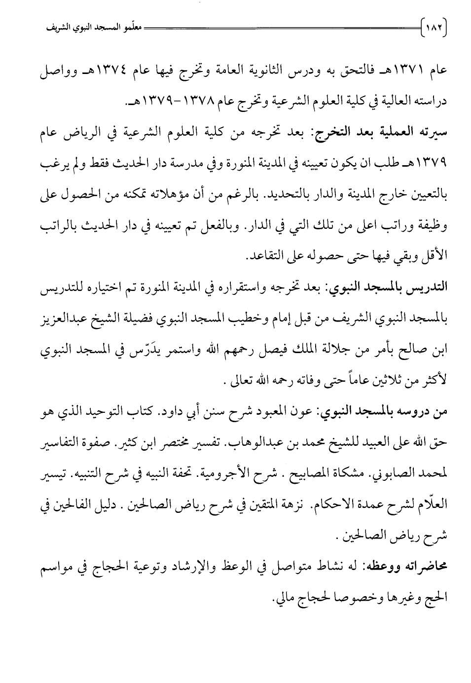 ابن صالح بأمر من جلالة الملك فيصل رحمهم الله واستمر يدرس في المسجد النبوي
