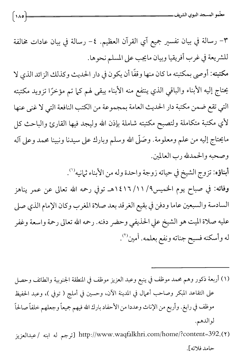 يحتاج إليه الأبناء والباقي الذي ينتفع منه الأبناء يبقى لهم كما تم مؤخرا تزويد مكتبته