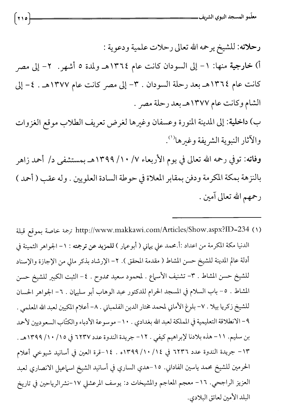 المشاط 5 - باب السلام في المسجد الحرام للدكتور عبد الوهاب أبو سليمان 6 - الجواهر الحسان
