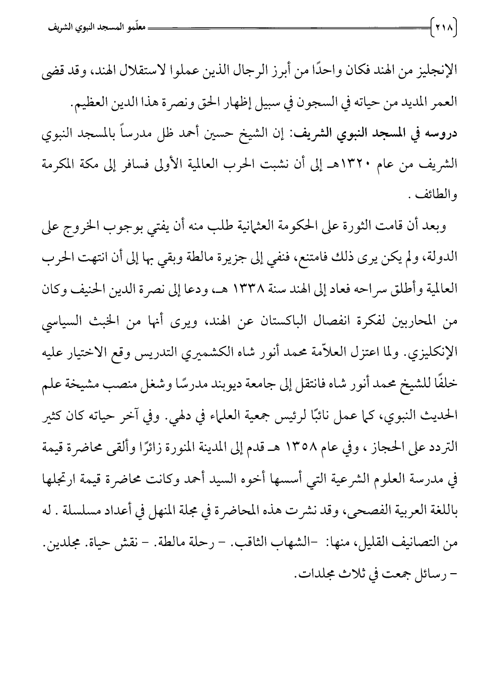 دروسه في المسجد النبوي الشريف: إن الشيخ حسين أحمد ظل مدرسا بالمسجد النبوي