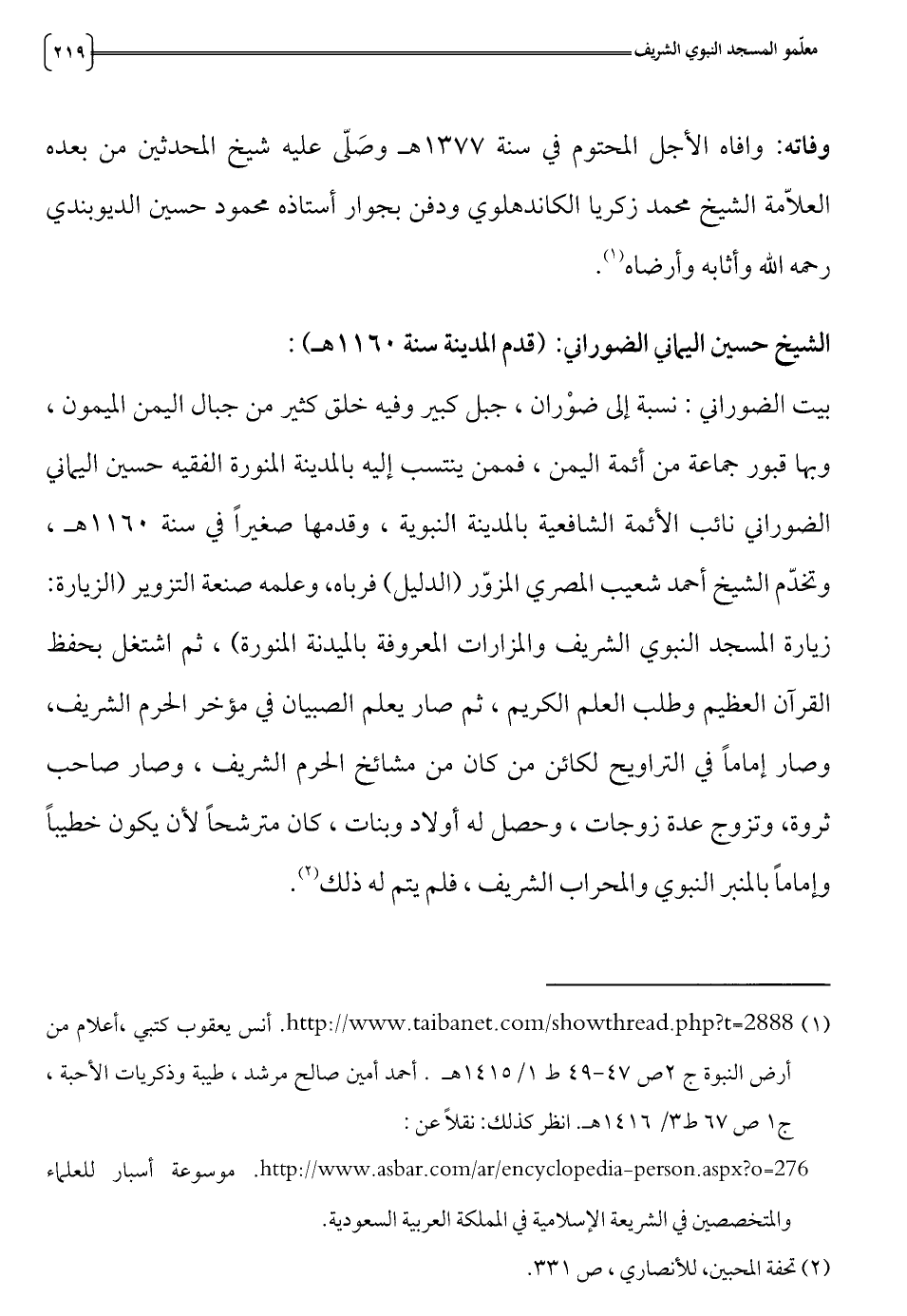 الشيخ حسين اليماني الضوراني: (قدم المدينة سنة 0 6 1 1 هـ):