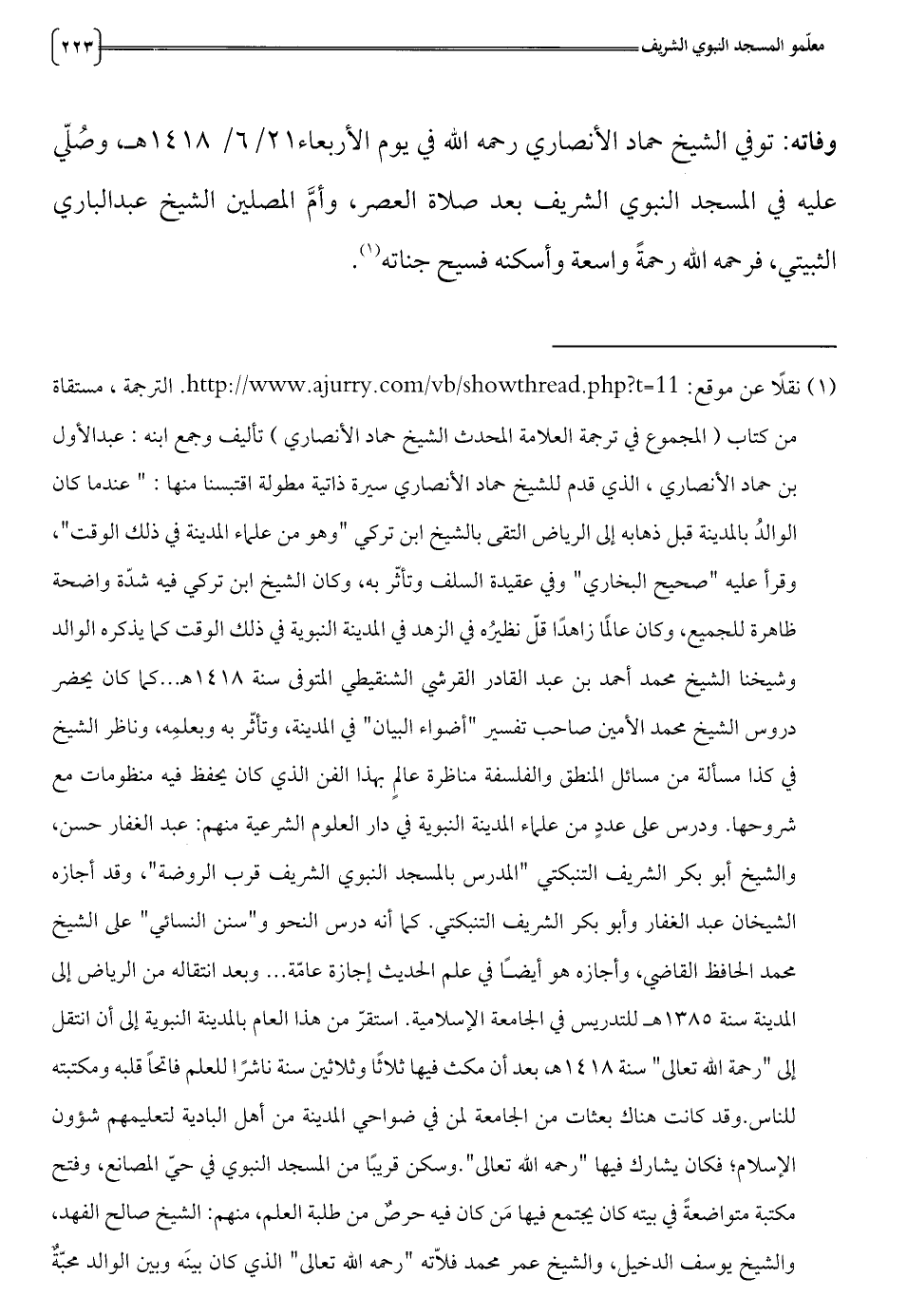من كتاب (المجموع في ترجمة العلامة المحدث الشيخ حماد الأنصاري) تأليف وجمع ابنه: عبدالأول