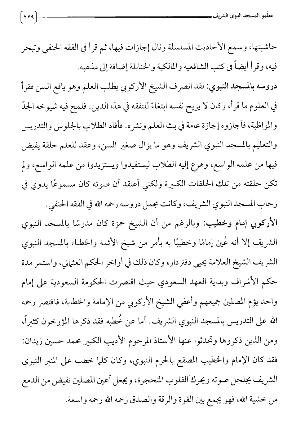 الأركوبي إمام وخطيب: وبالرغم من أن الشيخ حمزة كان مدرسا بالمسجد النبوي