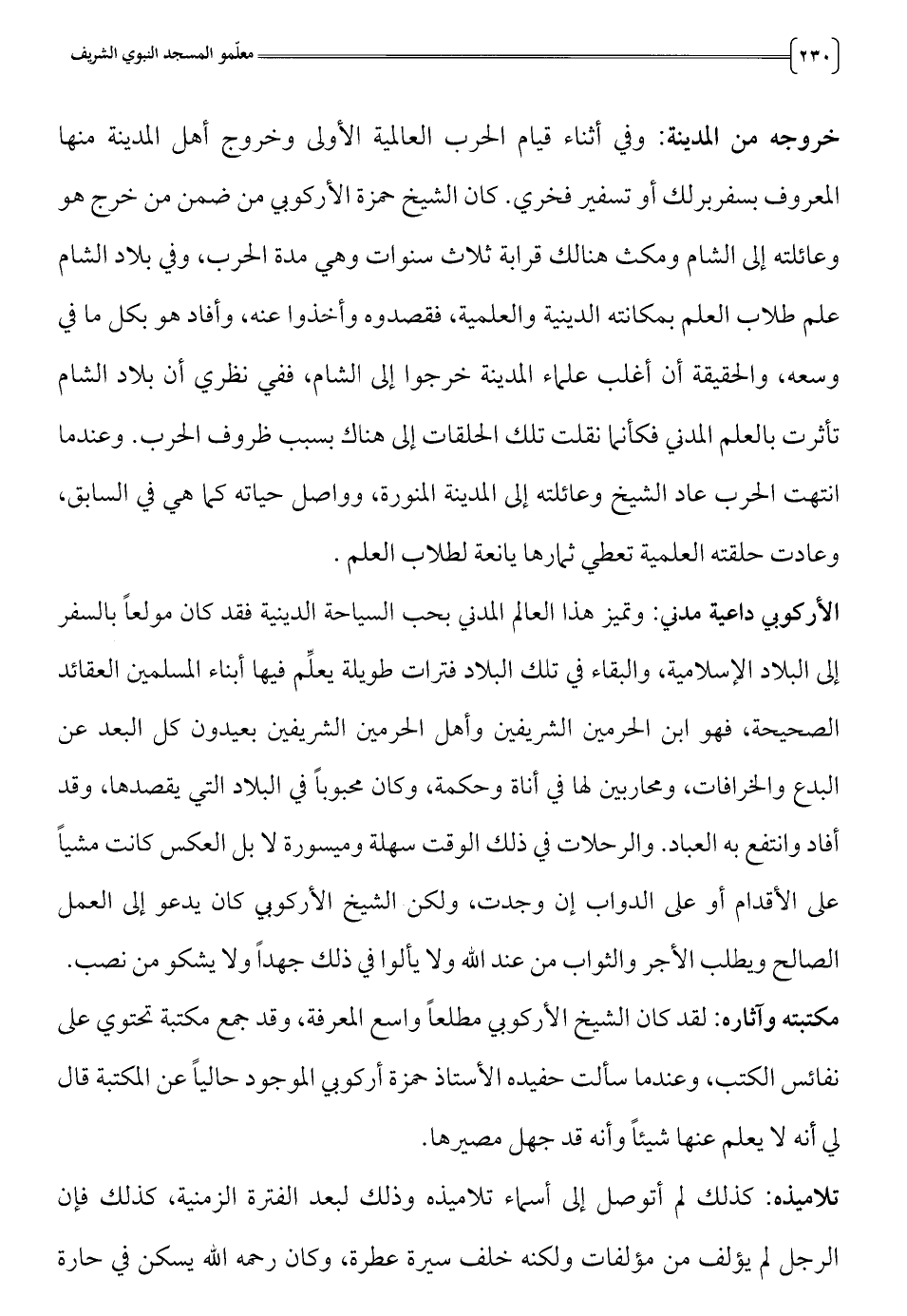 الأركوبي داعية مدني: وتميز هذا العالم المدني بحب السياحة الدينية فقد كان مولعا بالسفر