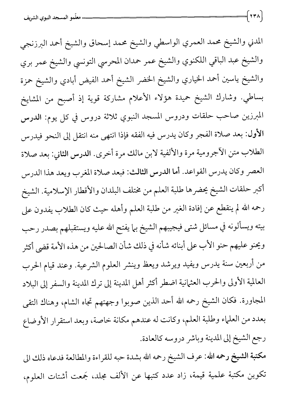 المبرزين صاحب حلقات ودروس المسجد النبوي ثلاثة دروس في كل يوم: الدرس
