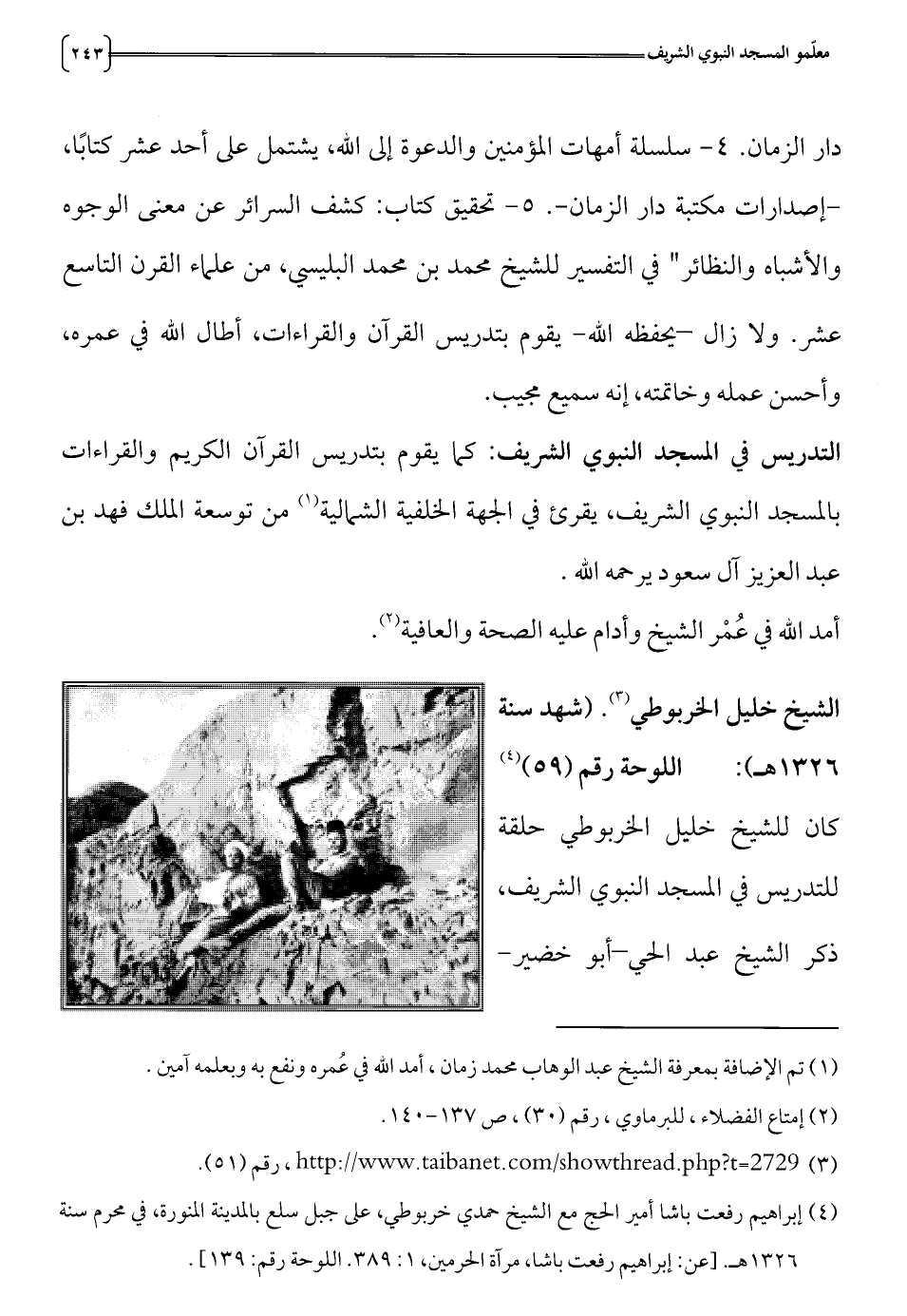 (4) إبراهيم رفعت باشا أمير الحج مع الشيخ حمدي خربوطي، على جبل سلع بالمدينة المنورة، في محرم سنة