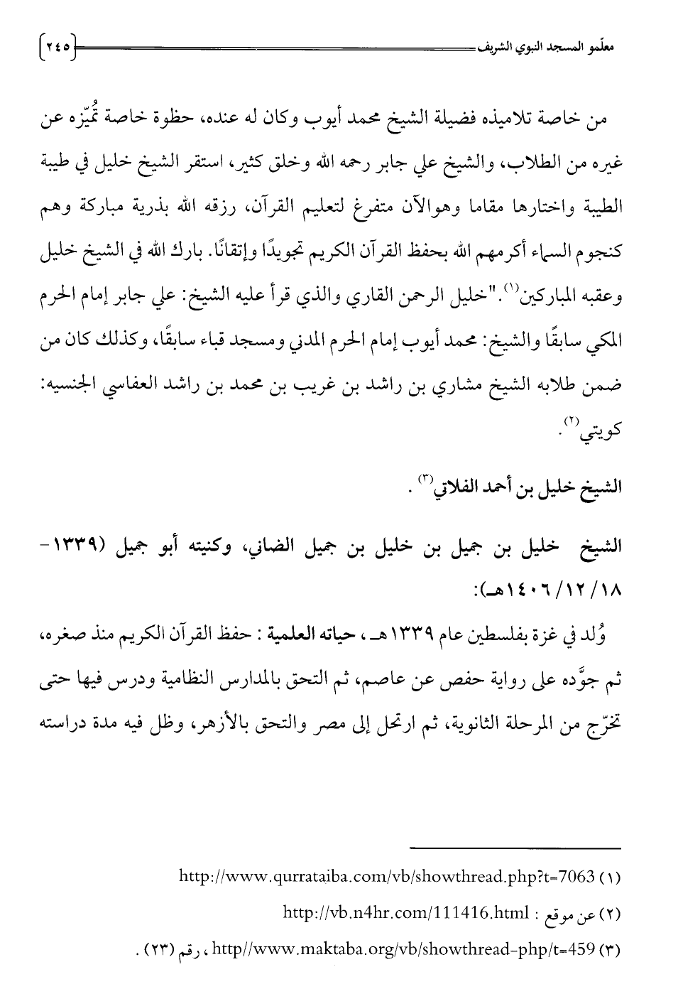 وعقبه المباركين (1)."خليل الرحمن القاري والذي قرأ عليه الشيخ: علي جابر إمام الحرم