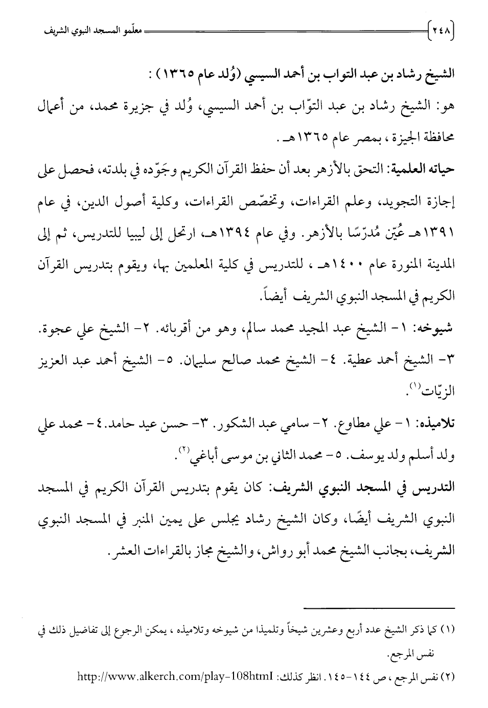 النبوي الشريف أيضا، وكان الشيخ رشاد يجلس على يمين المنبر في المسجد النبوي