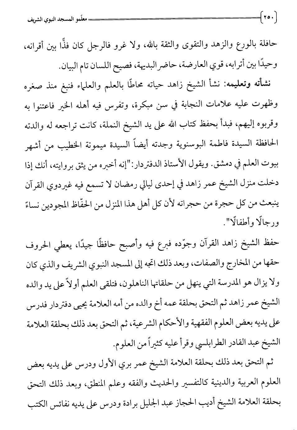 بحلقة العلامة الشيخ أديب الحجاز عبد الجليل برادة ودرلس على يديه نفائس الكتب