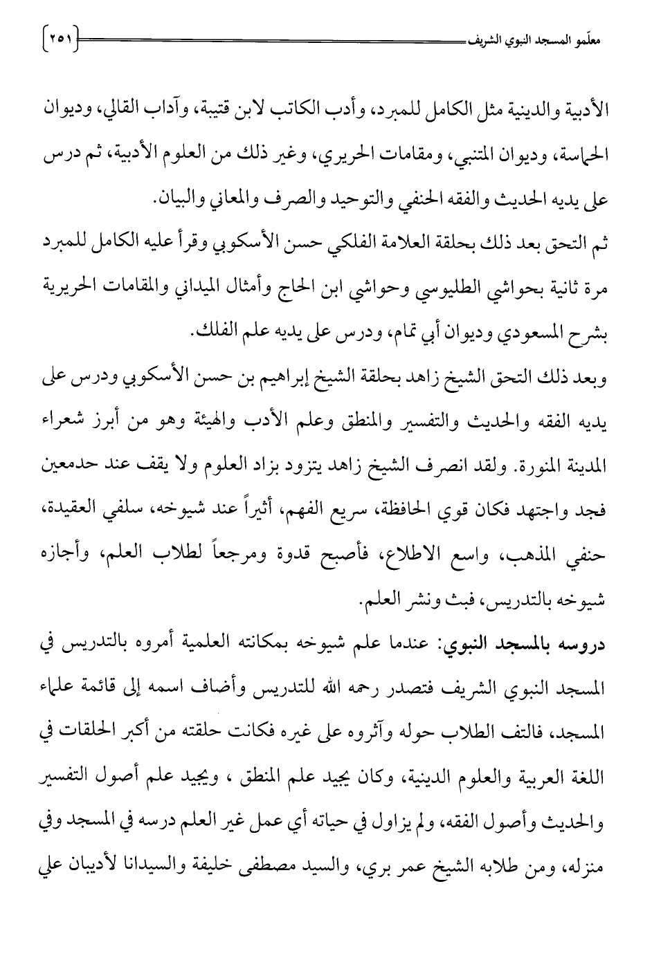 المدينة المنورة. ولقد انصرف الشيخ زاهد يتزود بزاد العلوم ولا يقف عند حدمعين