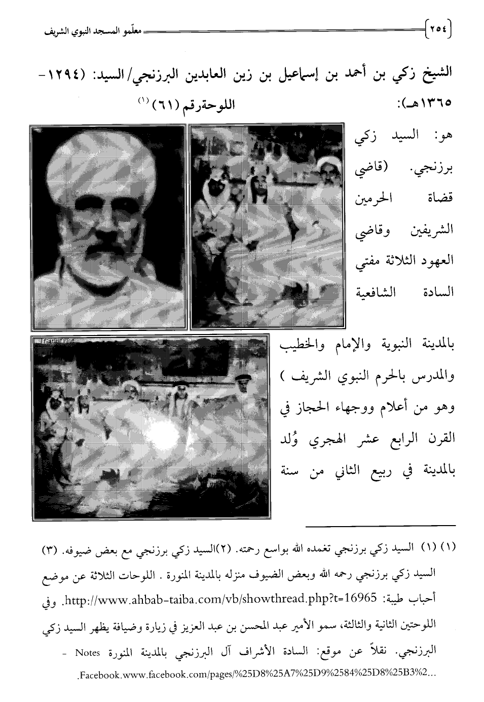 (1) السيد زكي برزنجي تغمده الله بواسع رحمته. (2) السيد زكي برزنجي مع بعض ضيوفه. (3) السيد زكي برزنجي رحمه الله وبعض الضيوف منزله بالمدينة المنورة. اللوحات الثلاثة عن موقع أحباب طيبة: 16965=،7 w. ahbab- taiba.com/vb/showthread.php http://www ا. وفي اللوحتين الثانية والثالثة، سمو الأمير عبد المحسن بن عبد العزيز في زيارة وضيافة يظهر السيد زكي