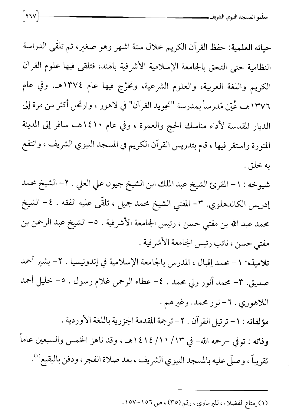 (1) إمتاع الفضلاء، للبرماوي، رقم (35)، ص 56 1 - 57 1.
