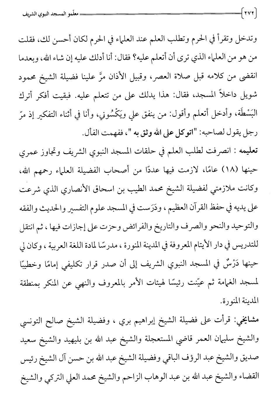 تعليمه: انصرفت لطلب العلم في حلقات المسجد النبوي الشريف وتجاوز عمري