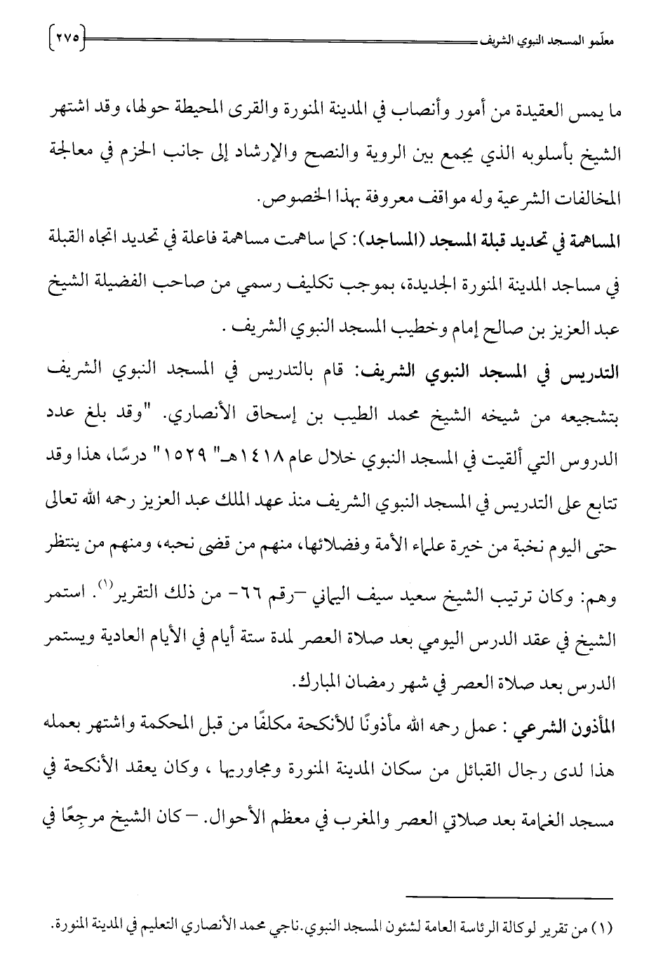 (1) من تقرير لوكالة الرئاسة العامة لشئون المسجد النبوي. ناجي محمد الأنصاري التعليم في المدينة المنورة.