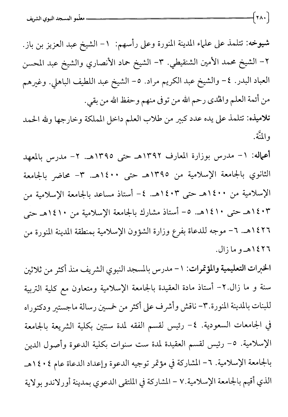 الخبرات التعليمية والمؤتمرات: 1 - مدرس بالمسجد النبوي الشريف منذ أكثر من ثلاثين