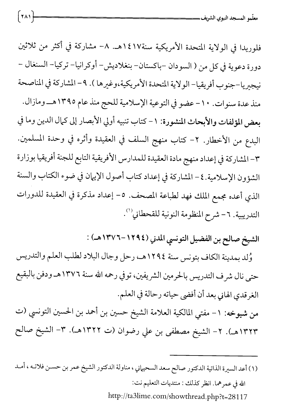(1) أعد السيرة الذاتية الدكتور صالح سعد السحيباني، مناولة الدكتور الشيخ عمر بن حسن فلاته، أمد