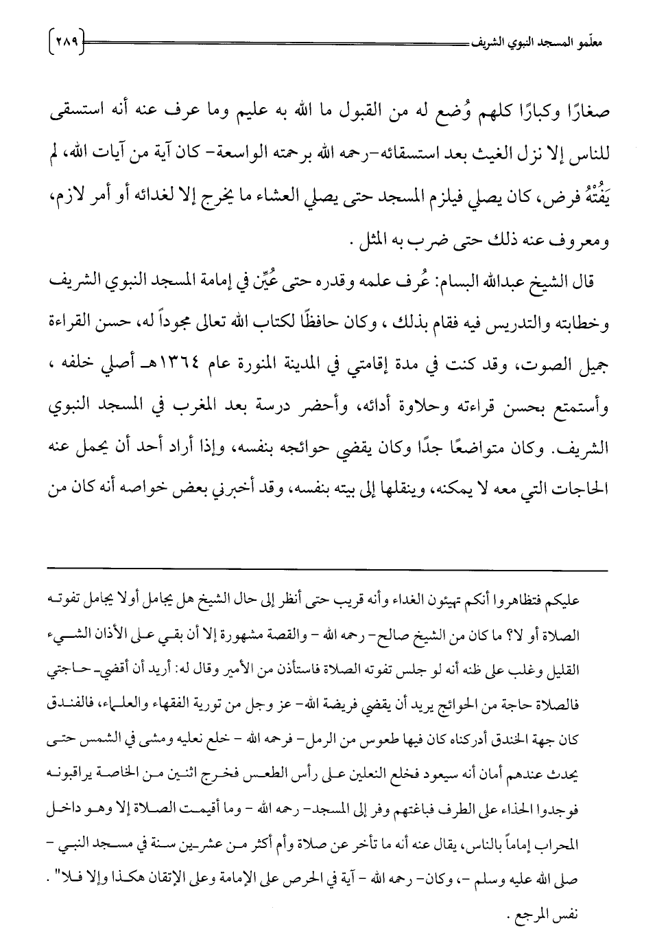 قال الشيخ عبدالله البسام: عرف علمه وقدره حتى عين في إمامة المسجد النبوي الشريف