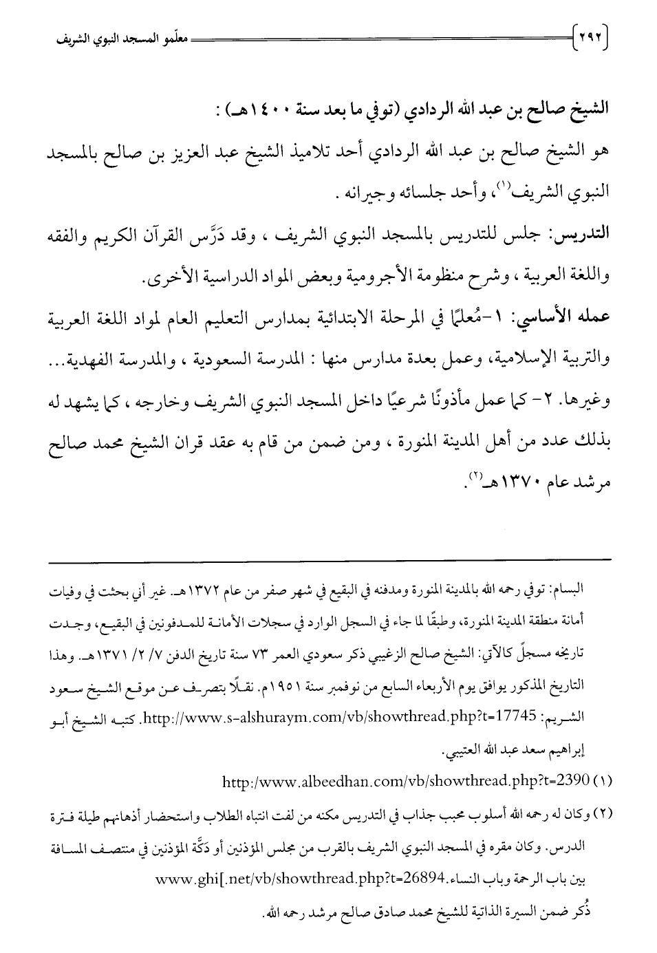 هو الشيخ صالح بن عبد الله الردادي أحد تلاميذ الشيخ عبد العزيز بن صالح بالمسجد