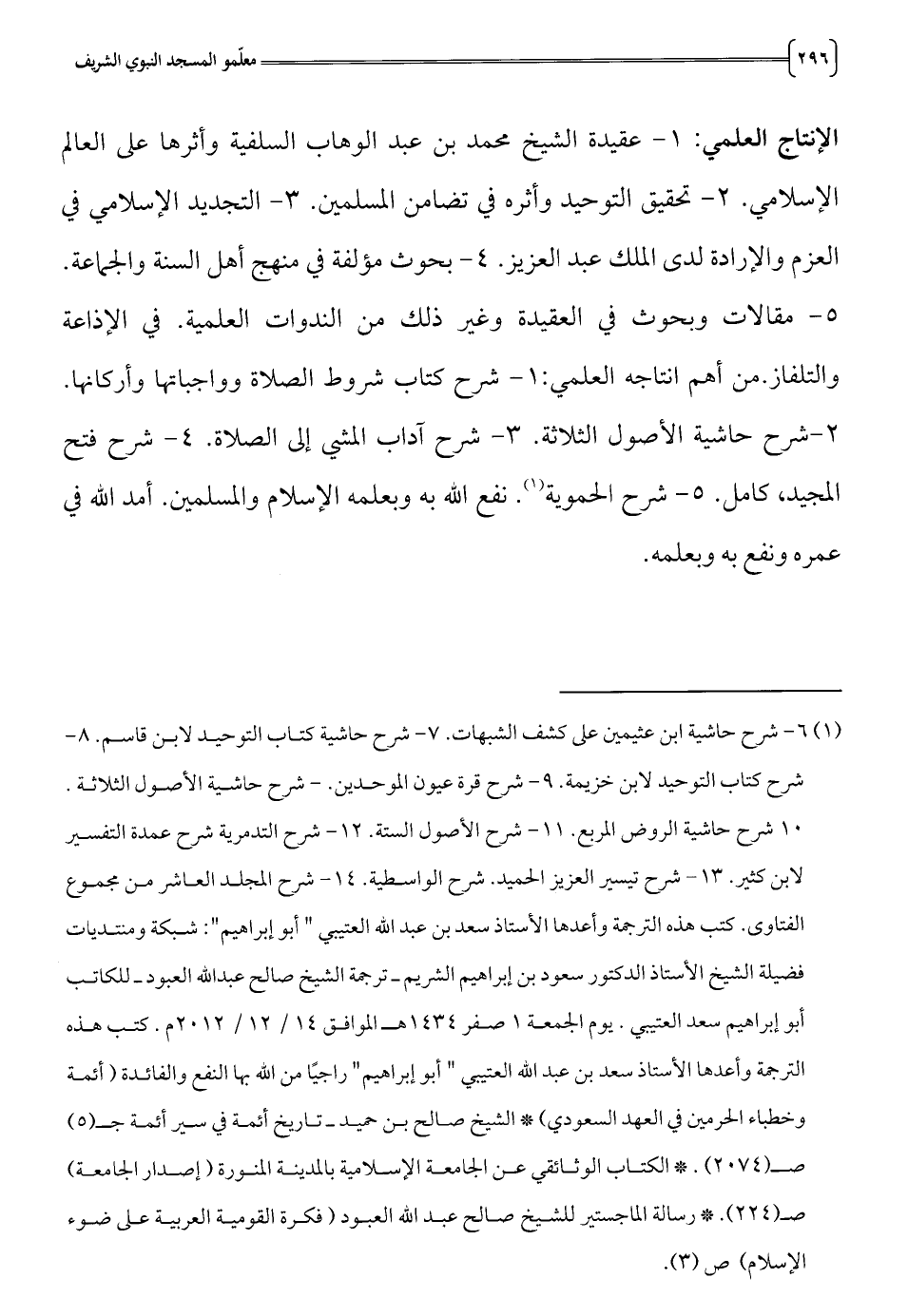 الإنتاج العلمي: 1 - عقيدة الشيخ محمد بن عبد الوهاب السلفية وأثرها على العالم