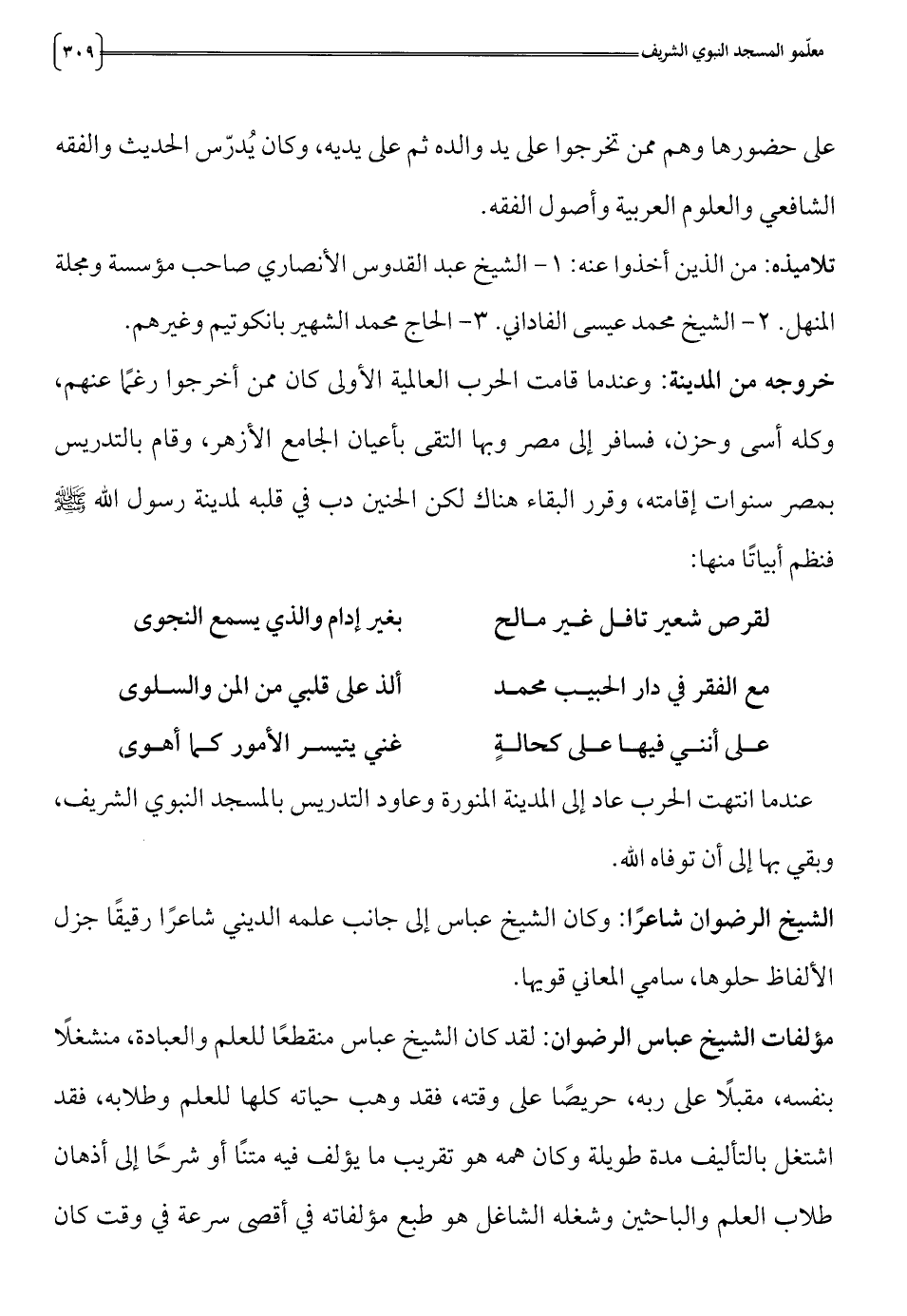 الشيخ الرضوان شاعرا: وكان الشيخ عباس إلى جانب علمه الديني شاعرا رقيقا جزل