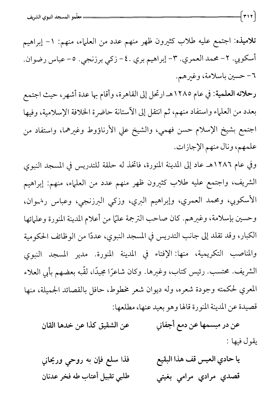 وحسين بإسلامة، وغيرهم. كان صاحب الترجمة علما من أعلام المدينة المنورة وعلمائها