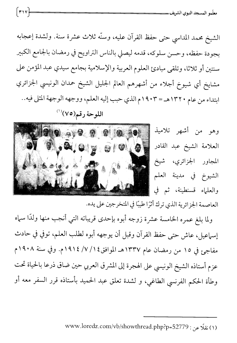 مشابخ أي شيوخ أجلاء من أشهرهم العالم الجليل الشيخ حمدان الونيسي الجزائري