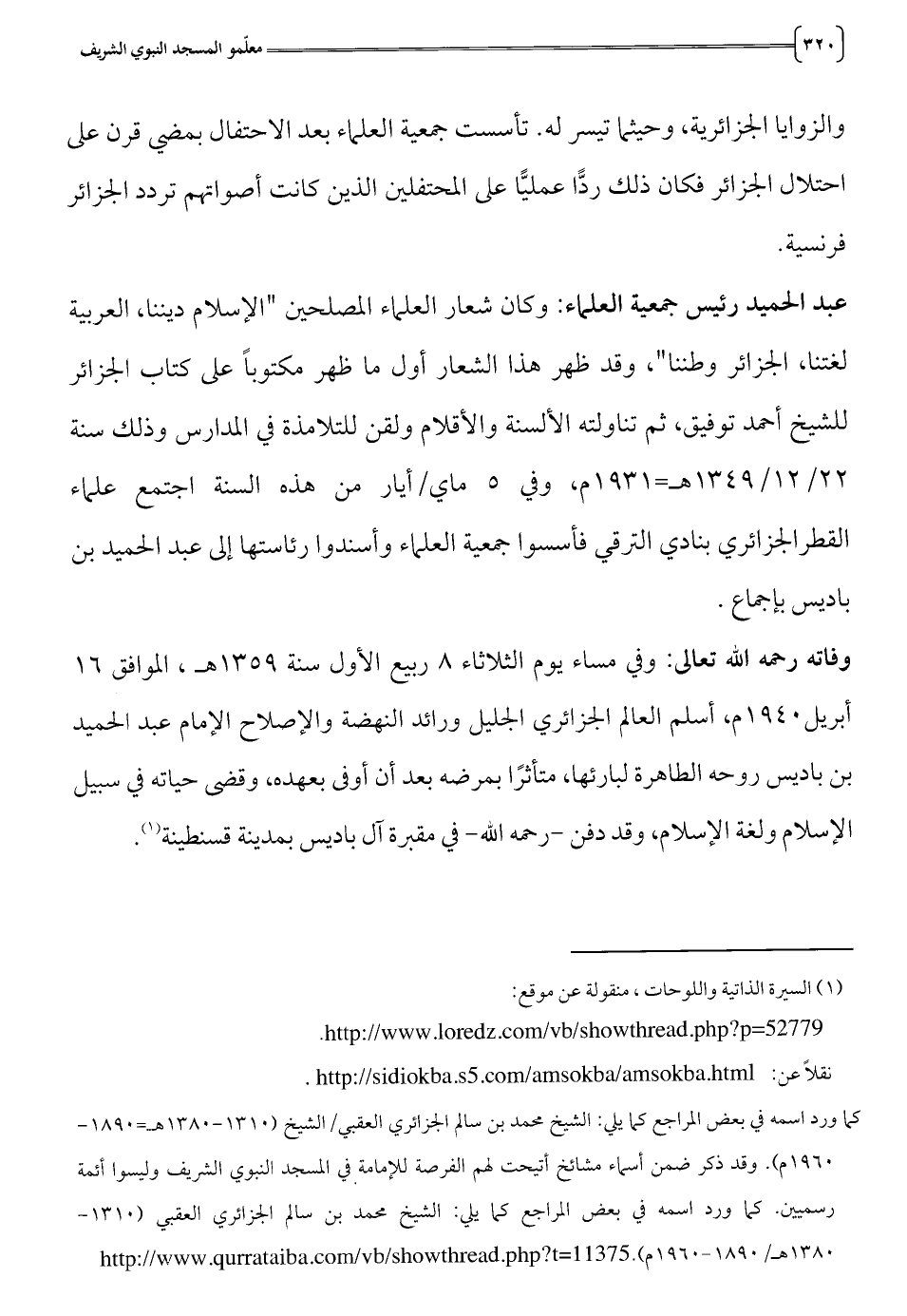 1965 م). وقد ذكر ضمن أسماء مشائخ أتيحتلهم الفرصة للإمامة في المسجد النبوي المثريف وليسوا أئمة