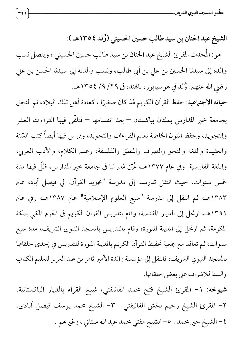 4 - الشيخ خير محمد 5 - الشيخ مفتي محمد عبد الله ملتاني، وغيرهم.