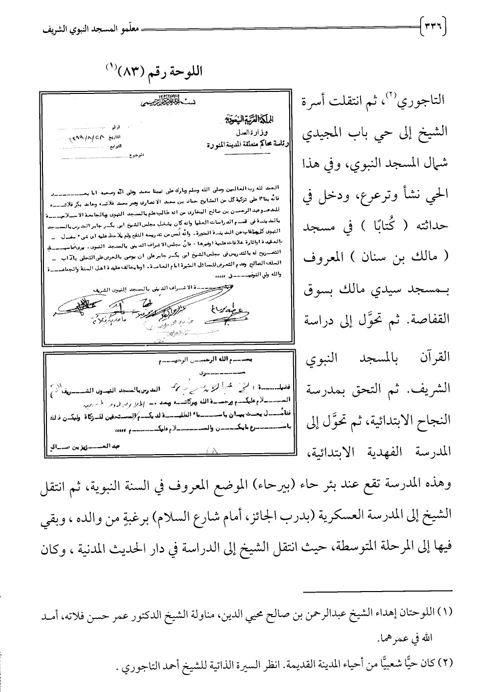 (1) اللوحتان إهداء الشيخ عبدالرحمن بن صالح محيي الدين، مناولة الشيخ الدكتور عمر حسن فلاته، أمد الله في عمرهما.