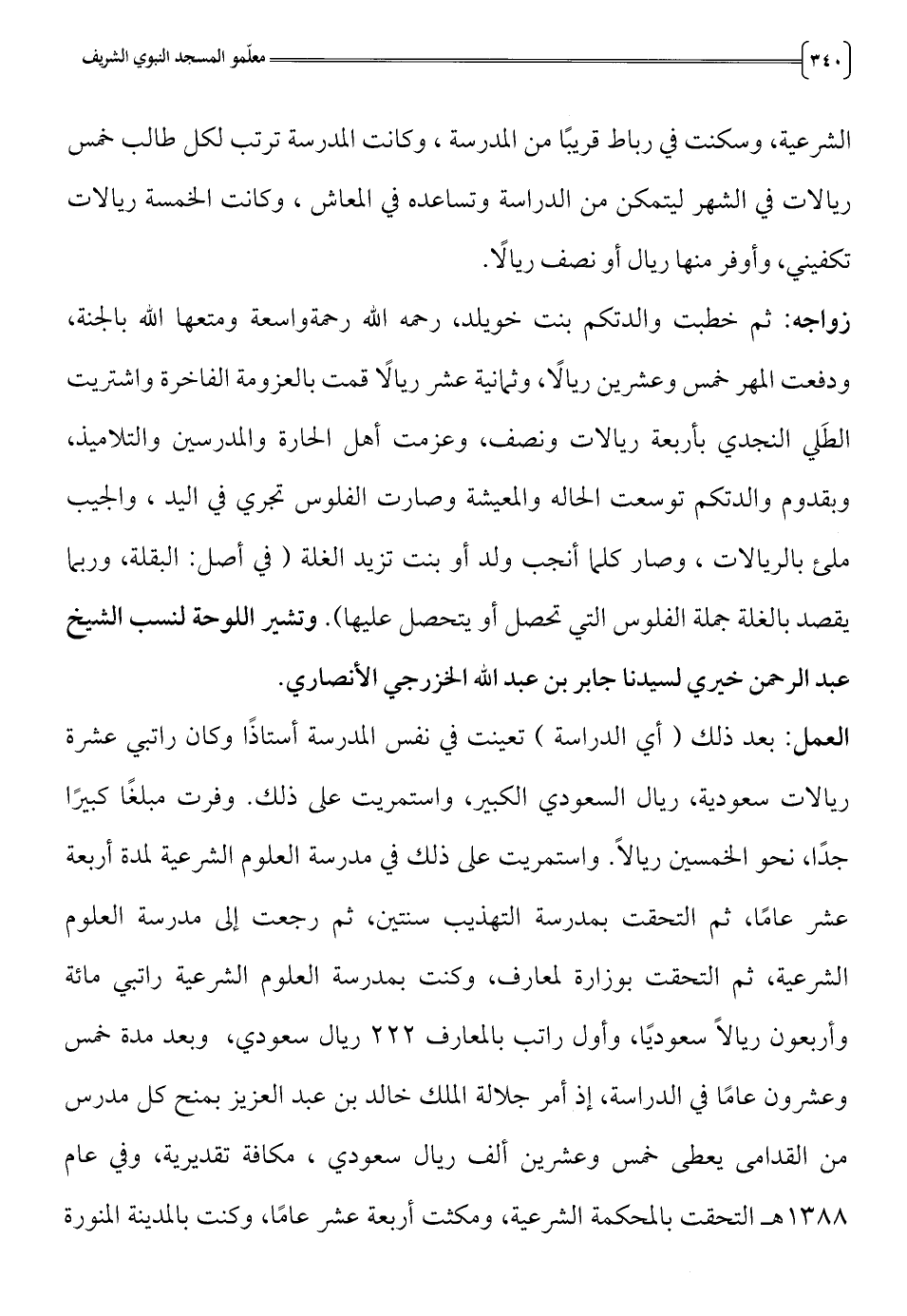 وأربعون ريالا سعوديا، وأول راتب بالمعارف 222 ريال سعودي، وبعد مدة خمس