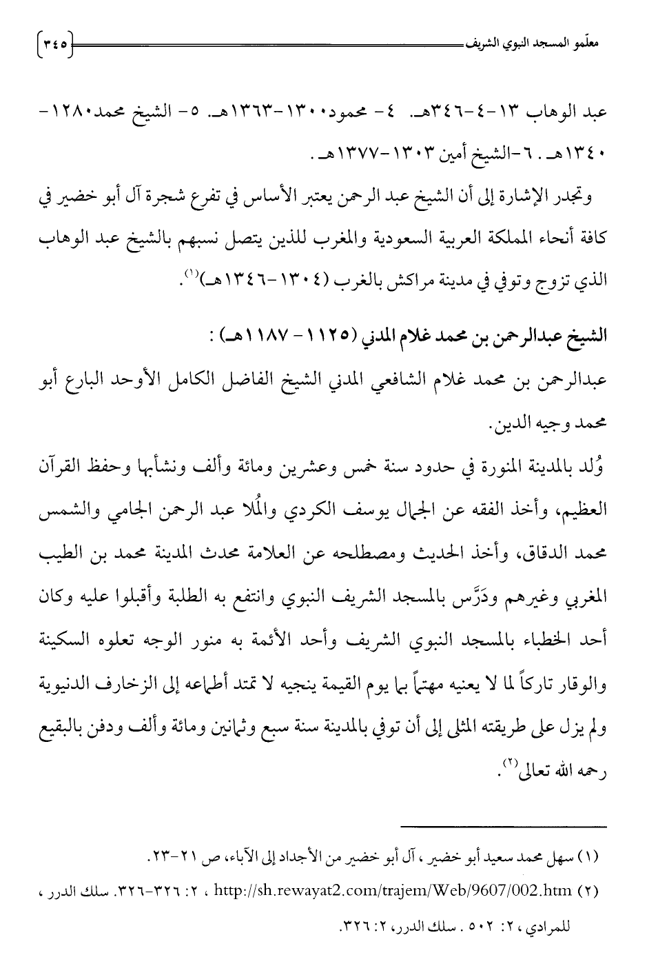 (2) 326 - 326:2، http://sh. rewayat2.com/trajem/Web/9607/ 002. htm. سلك الدرر،