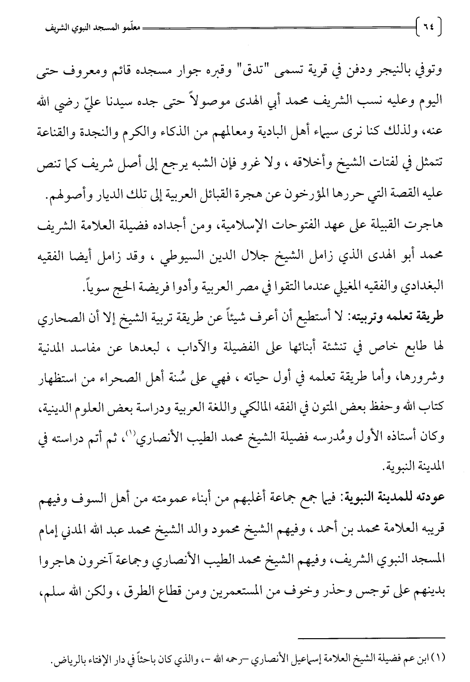 (1) ابن عم فضيلة الشيخ العلامة إسماعيل الأنصاري -رحمه الله -، والذي كان باحثا في دار الإفتاء بالرياض.