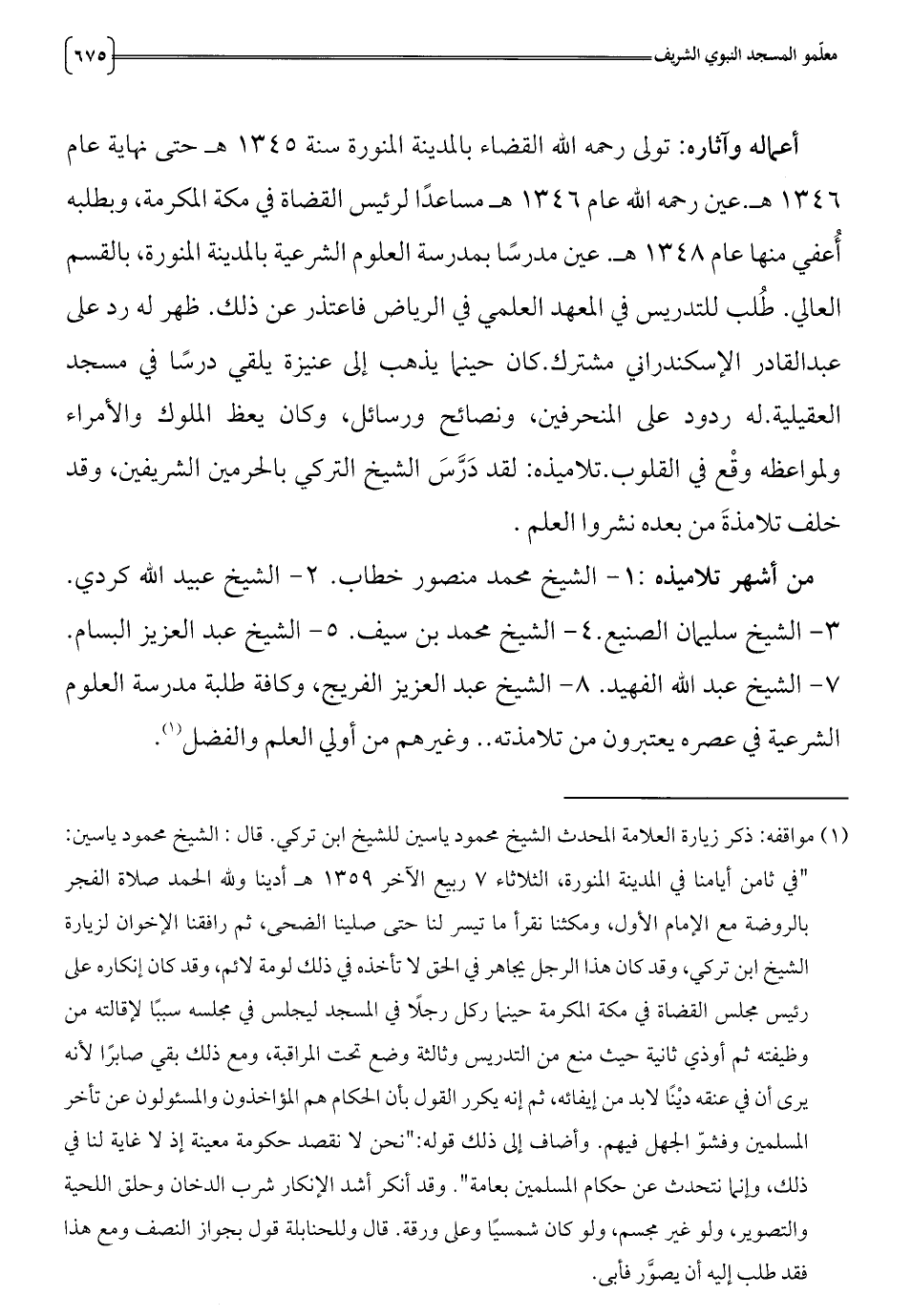 (1) مواقفه: ذكر زيارة العلامة المحدث الشيخ محمود ياسين للشيخ ابن تركي. قال: الشيخ محمود ياسين: